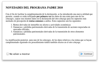 Renta 2010 (Modelo PADRE) ofrece un estilo sencillo y simple y una completa ayuda para no perderte en ningún paso y responder a todas tus dudas.